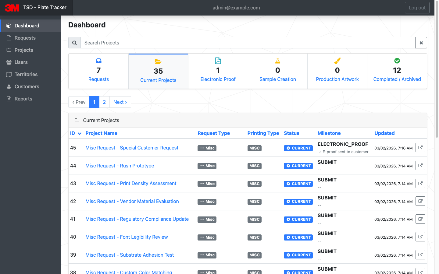 - Status Tracking: Both 3M and the state DMV could track the status of each request at any point in the workflow. The system provided a visual indicator of each request's current status, such as "In Design," "Under Review," or "Ready for Production," giving all parties clear visibility into the progress of each request.